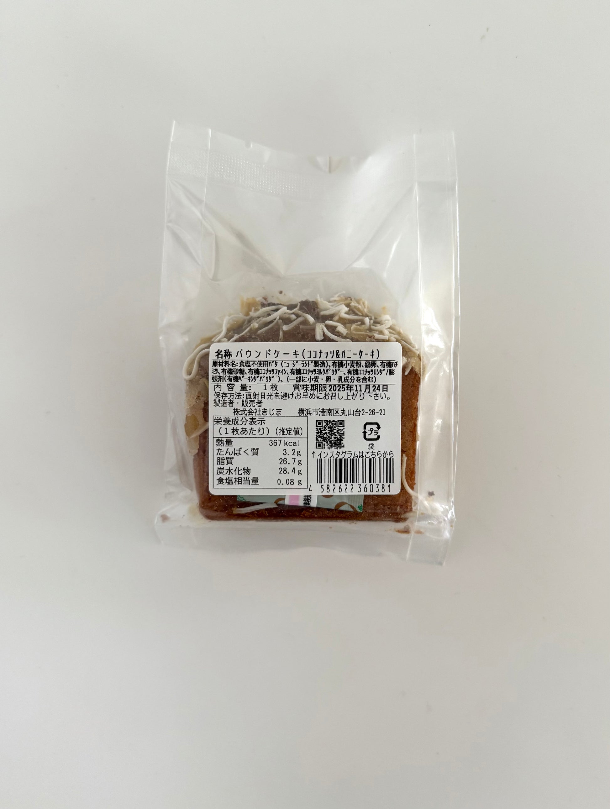 有機素材のパウンドケーキ KIJIMA パウンドケーキ ココナッツ&ハニー