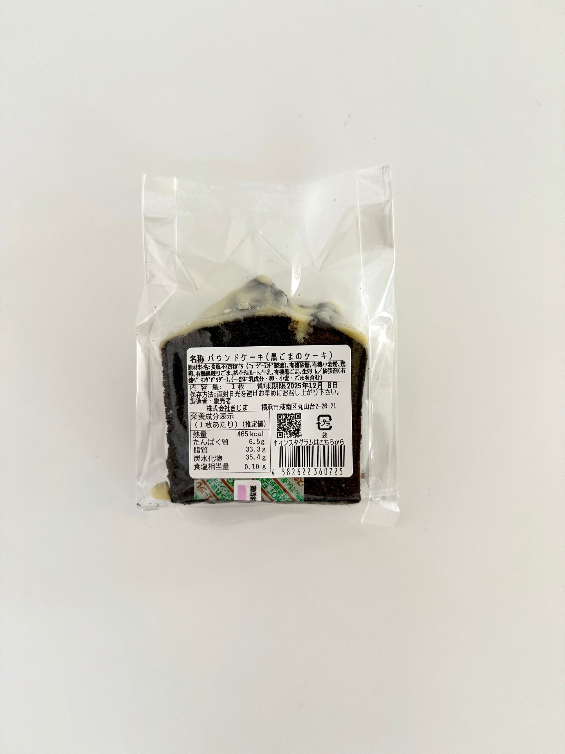 無塩バター、有機砂糖、有機小麦粉、平飼い有精卵、有機黒練りごま、ホワイトチョコレート、牛乳、有機黒ごま、生クリーム、有機ベーキングパウダー(一部に 小麦・卵・乳成分を含む)