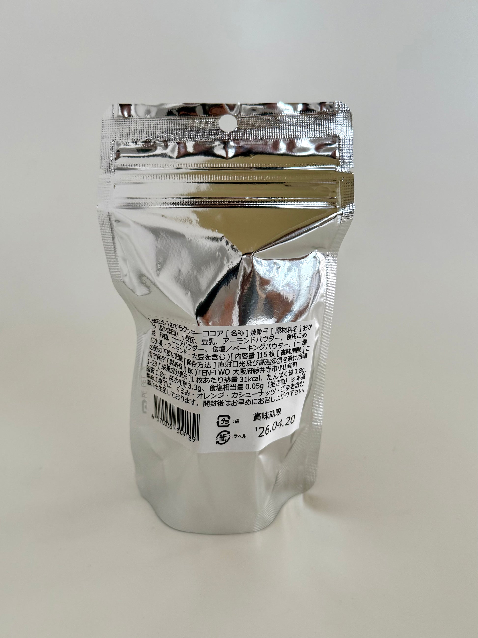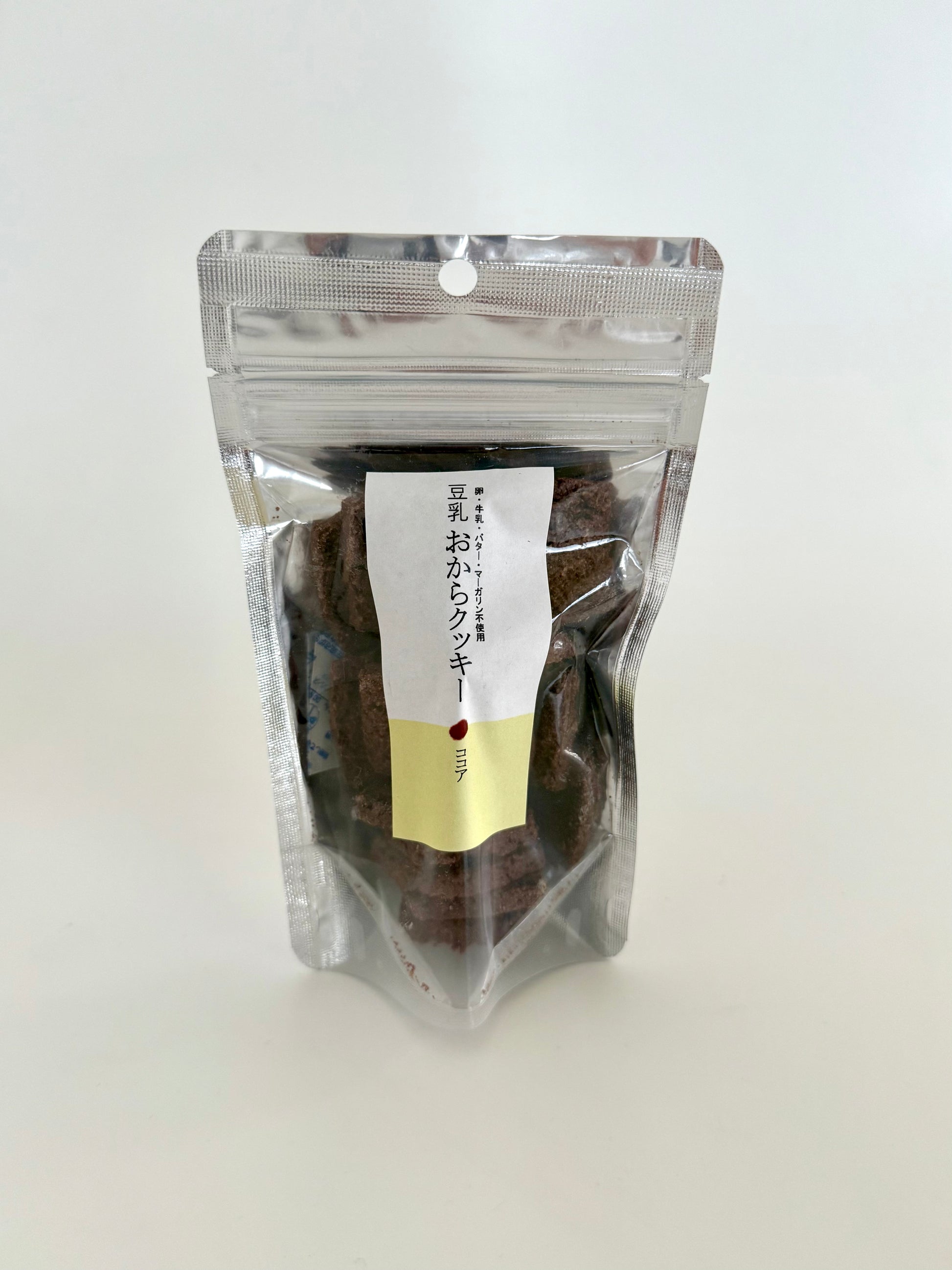 創業100年以上の豆腐屋が毎朝搾る新鮮な豆乳と、国内製造のおからをたっぷり使用した、やさしく満足感のあるヘルシー焼き菓子です。牛乳・卵・バター・マーガリンなどの動物性原料を使わず、保存料・香料・着色料も無添加。ココアの深い香りとともに、サクッとホロっとした食感が楽しめます。忙しい日のおやつに、授乳期・ダイエット中・お子さまのおやつにも安心してお選びいただけます。チャック付きのパッケージで、開け閉めもしやすく保存にも配慮されています。