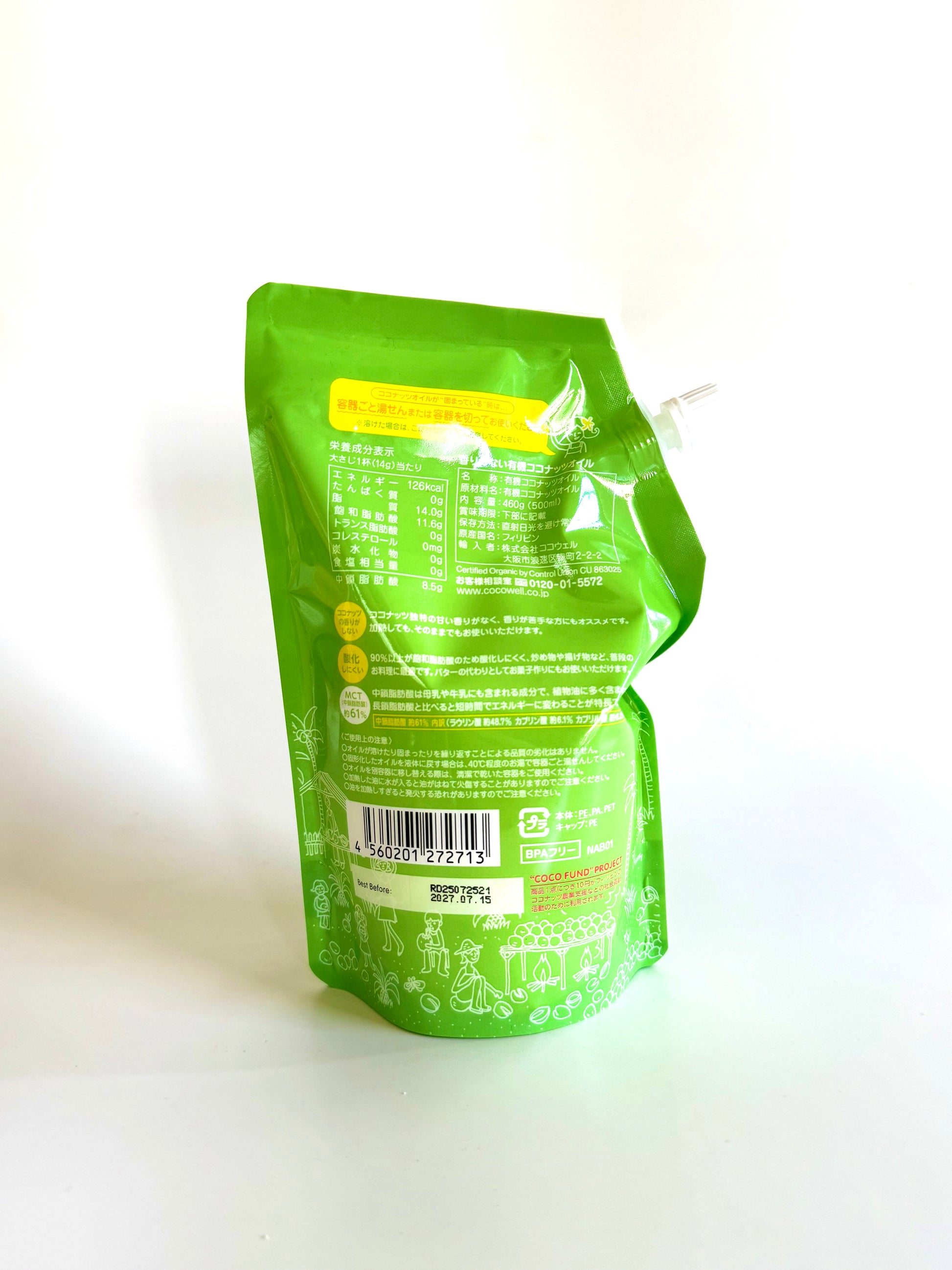 有機JAS認証を受けたココナッツオイルを原料に使い、香りを取り除きつつも栄養価や使いやすさを損なわない抽出方法で抽出することで酸化に強い飽和脂肪酸が豊富でありながら、中鎖脂肪酸(MCT)も含む、植物油としての特性も備えています。これが加熱調理や生食など、幅広い用途での違いにつながっています。